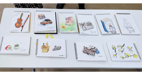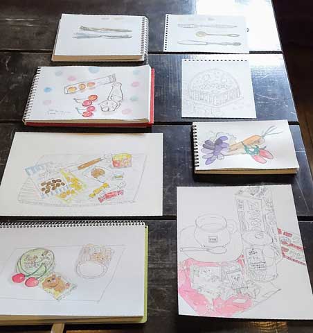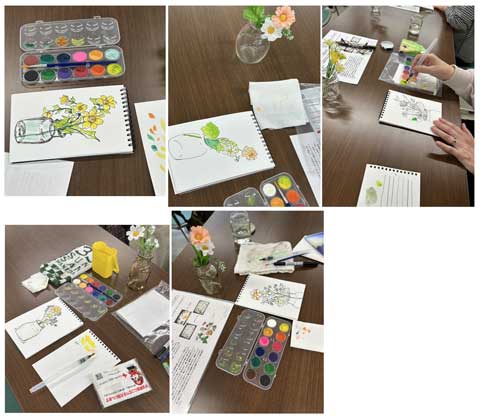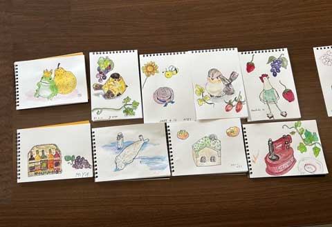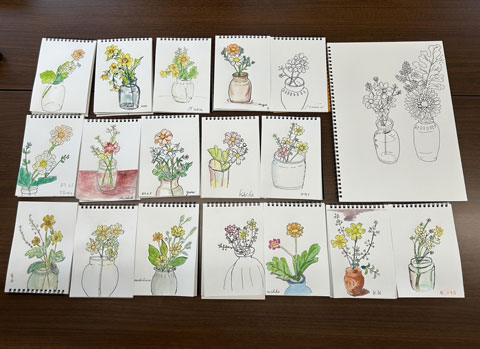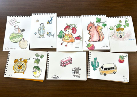 一日目は、ペンの使い方と絵の具の使い方、モチーフの見方の基本を知ってもらい、慣れることが目標でしたので、簡単なモチーフは良かったかなと思っております。