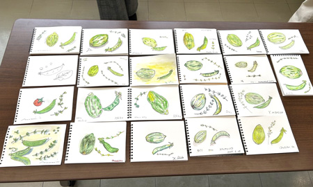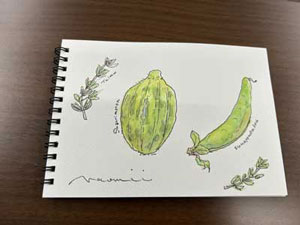 一日目5月29日 「スグリメロンとスナップえんどう+ハーブをスケッチ」