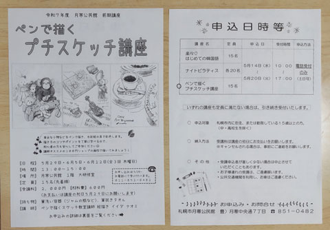 月寒公民館さん企画の「ペンで描くプチスケッチ講座」全三回の講座を終了しました