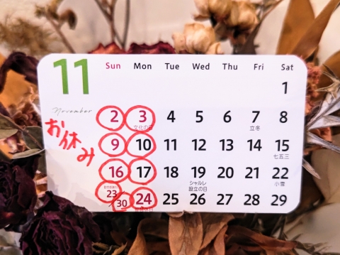 5月のお休みは、ゴールデンウィーク中も定休日以外は通常通り営業致します。