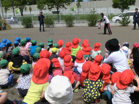 消防署員の方が来園しての、現地指導避難訓練。