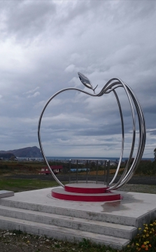 そして3人でりんごのオブジェで記念写真を自撮りでとるの難しくて大爆笑!!