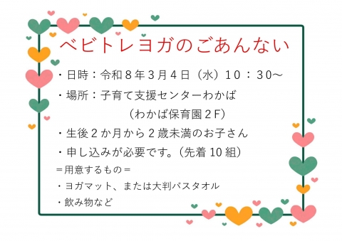 先日の「ベビトレヨガ」のご案内に誤って記載しておりました点がありました。