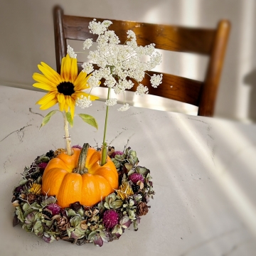 ◆フレッシュフラワーとドライリースのハロウィンアレンジ