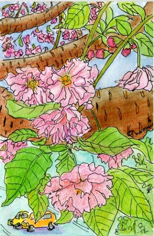 札幌市白石サイクリングロード付近の桜。2011年5月下旬の写真から描きました。