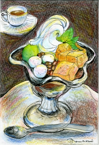 パフェを描きたくなって、今まで撮った写真を探して描いた。