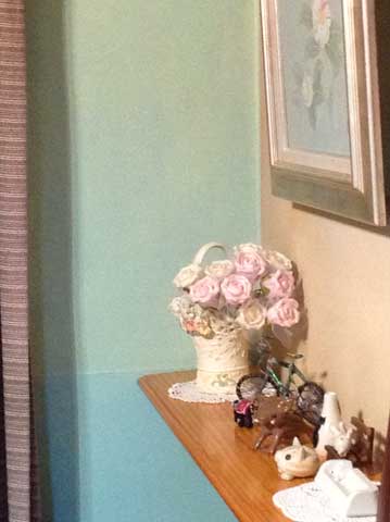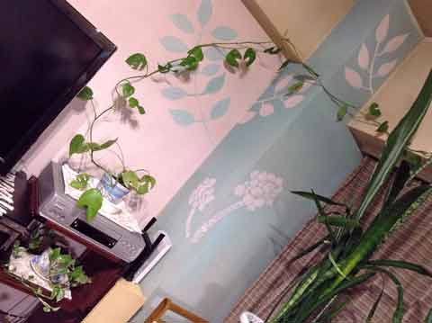次は結構広い壁を桜色に塗って角に模様を描いた
