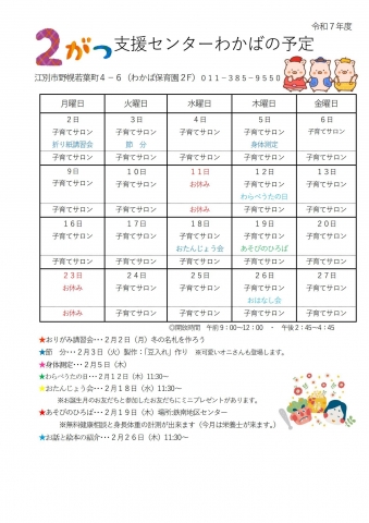 2月の行事予定