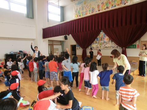 グループごとに、絵本を読んでくれたり、寸劇発表やじゃんけんゲームなどを発表し