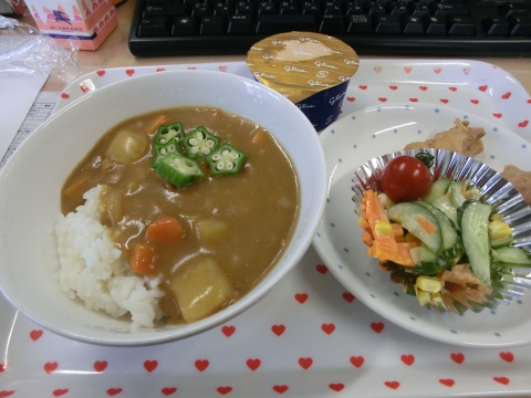 今日は、彩りの良い子ども達の大好きなカレーライス。