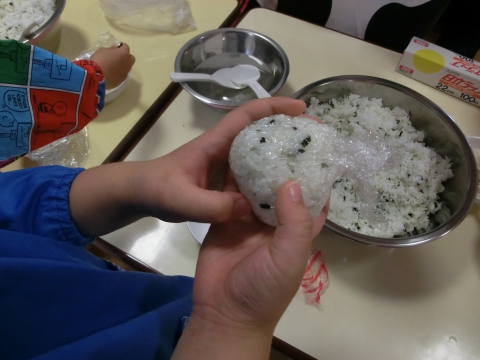 真剣に作りました。自分で作ったおむすびは、格別だったことでしょうね!!