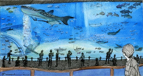 昨日描いていて思ったのが、水族館は勿論感動ですが、