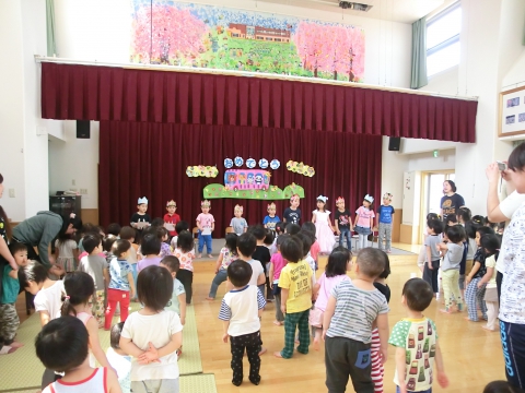 お誕生日のお友だちは、ステージに上がり一人一人、おうちの方からの素敵なメッセージ付きのカードをもらい、とても嬉しそうでしたよ