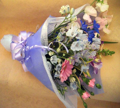 スイートピー カスミソウ スプレーキクを使用した お祝い お供え用花束をご用意しています。 江別市内、近郊配達無料。
