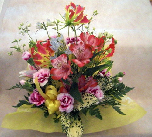 アルストロメリアを使用したお祝い アレンジメント 江別市内、近郊配達無料。